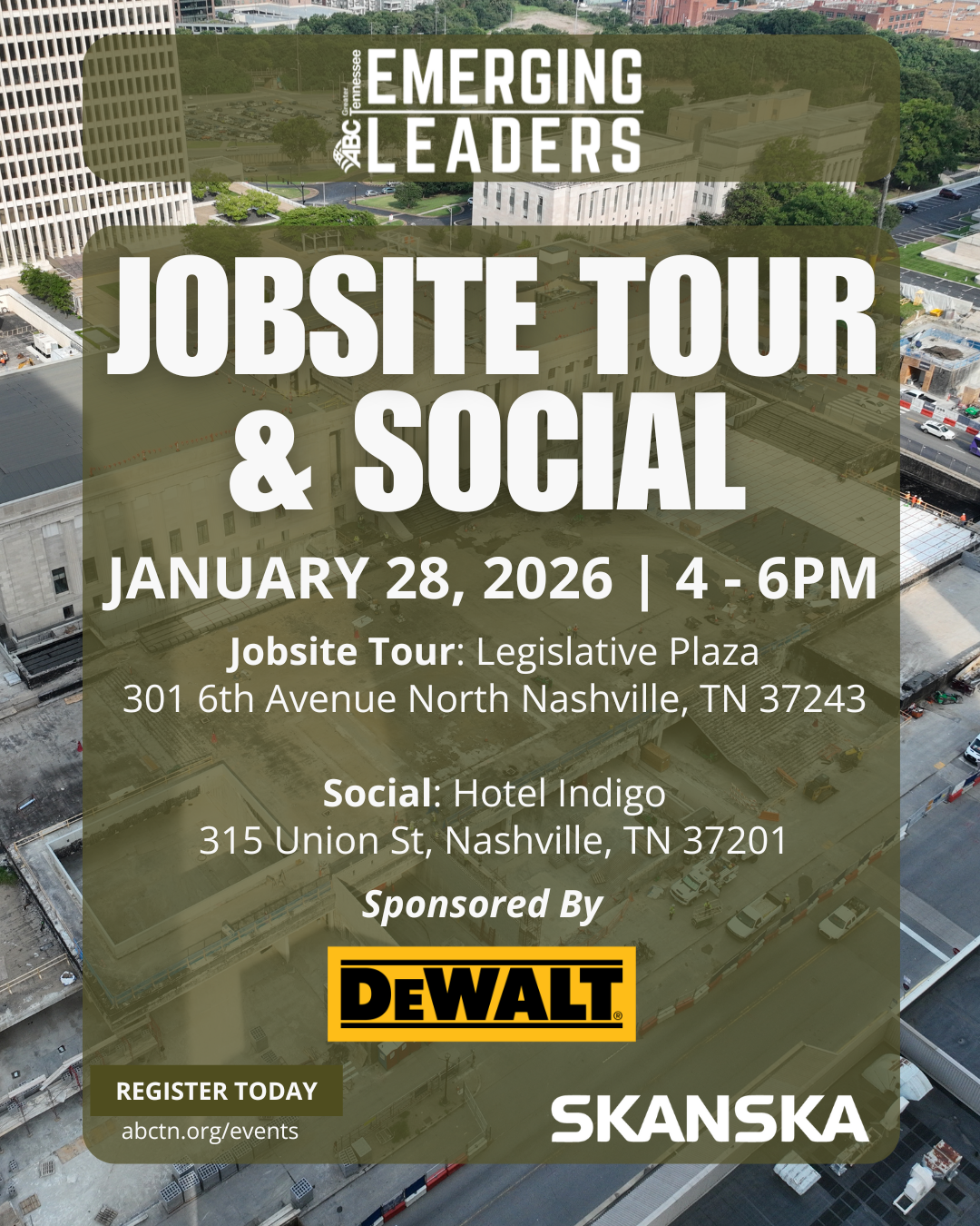 Join ABC-EL for a jobsite tour of Skanska's Legislative Plaza, followed by a social at Hotel Indigo
