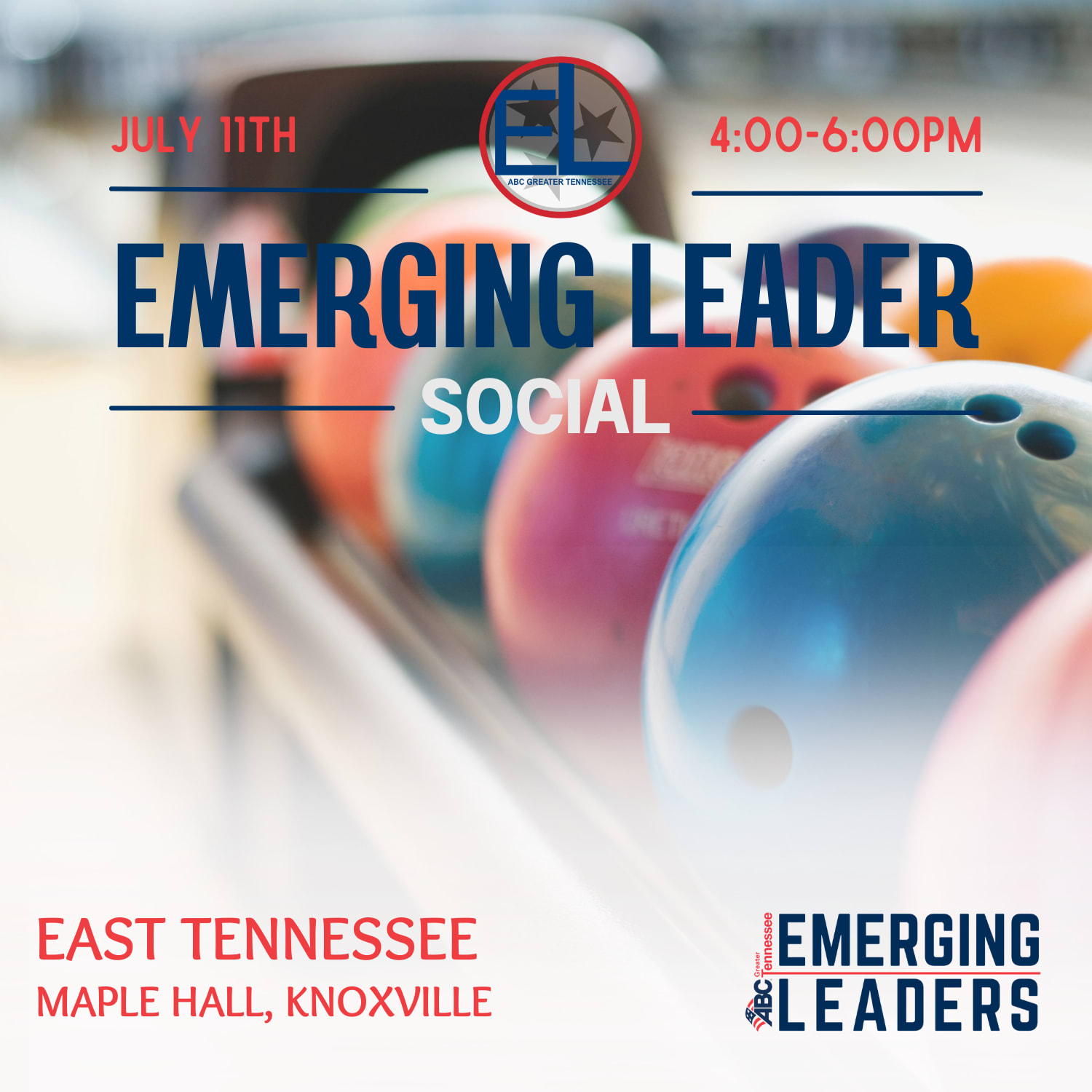 COME JOIN US FOR OUR EMERGING LEADERS SUMMER KICK-OFF EVENT! INCLUDED WITH ADMISSION, TWO ROUNDS OF BOWLING, SNACKS, AND DRINK TICKETS.
